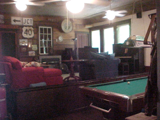 King size room with jacuzzi tub 69.00 room 2, queen size beds double occupancy 59.00 Each additional person 10.00 queen size bed, down bedding .....49.00 A large deck surrounds the building Downstairs gathering room Baby grand in gathering room dining in large room Professional stainless kitchen dining in country kitchen Upstairs gathering room with big screen tv and pool table